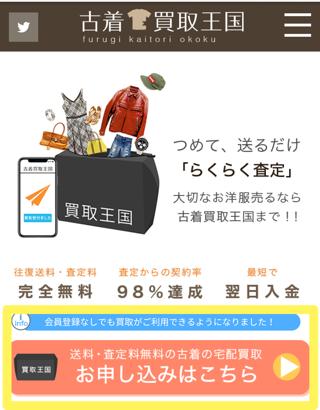 以下では、スマートフォンでの操作を例に、古着買取王国での査定手順を解説していきます。