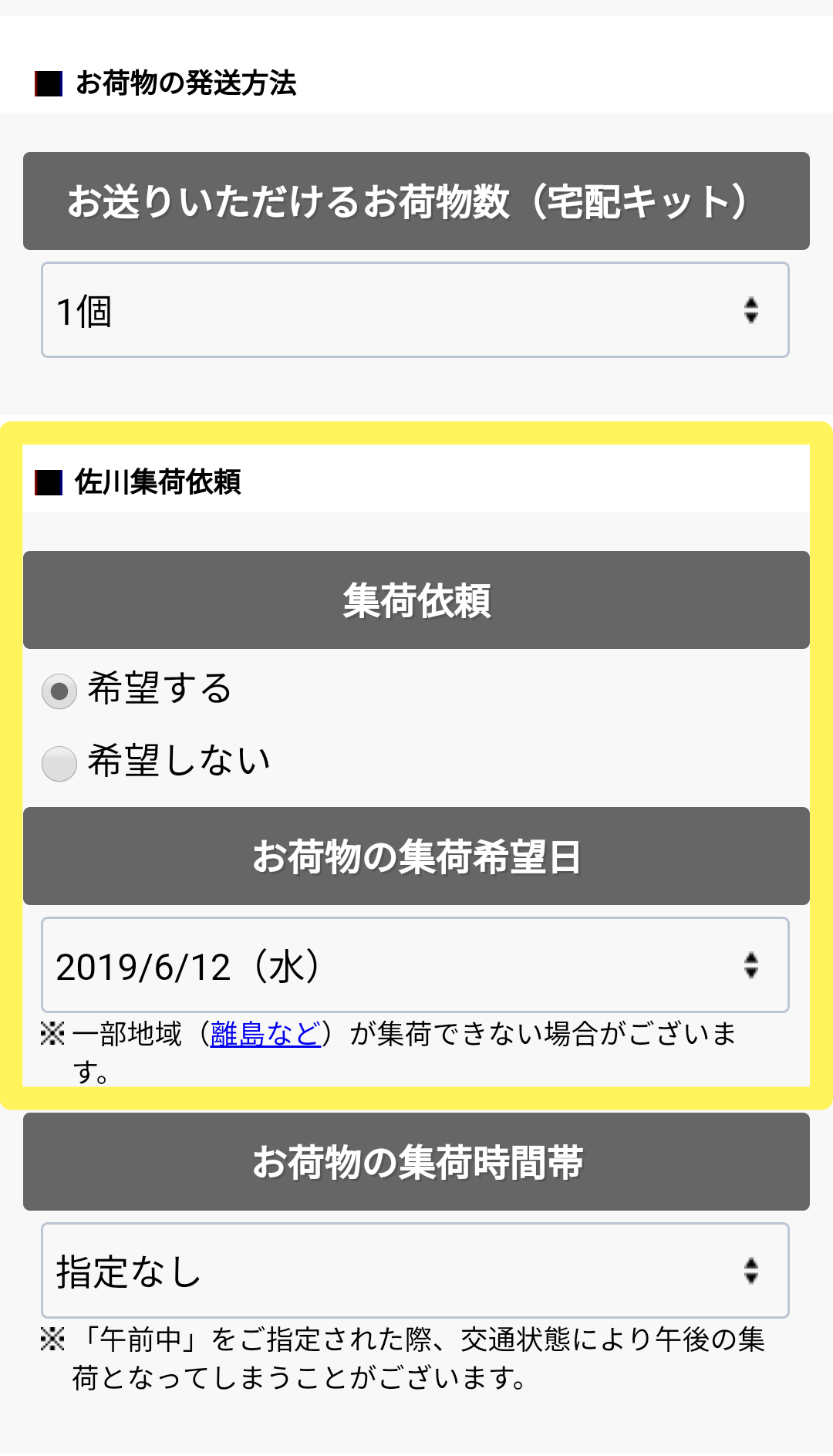 集荷(自宅に荷物を取りに来てくれる)の日を決めることができる